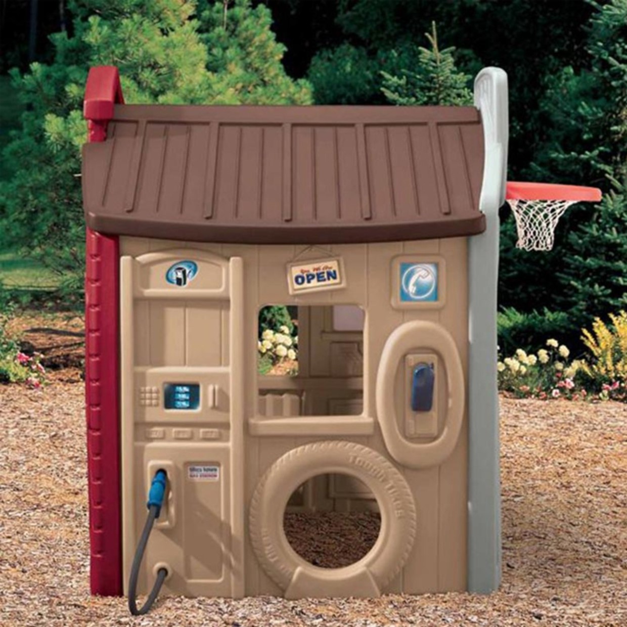 om de bal naar toe te gooien en allerlei spellen te spelen. Een benzinestation met